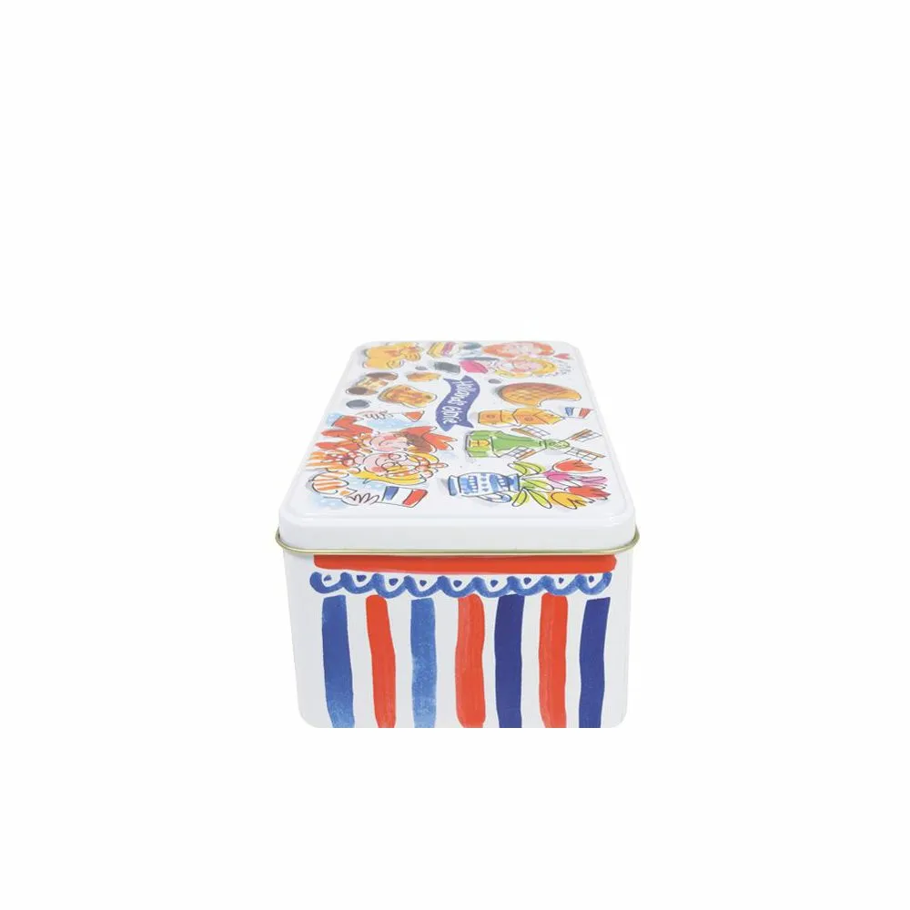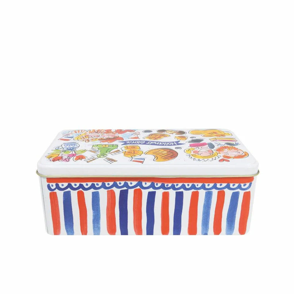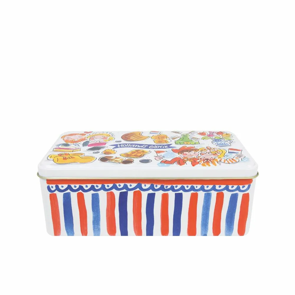 We love Holland! De Hollands Glorie lijn van Blond Amsterdam is vormgegeven in frisse rood/wit/blauwe tinten en voorzien van typisch Hollandse illustraties. Op dit koekblik staan illustraties van o.a. een molen, stroopwafel en tulpen.