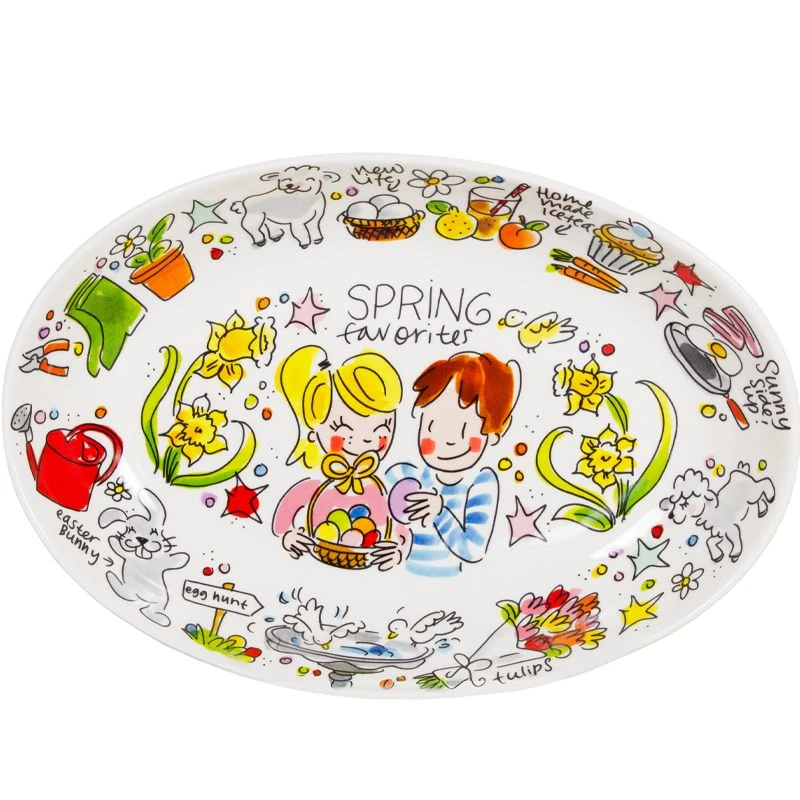 Happy Easter! Vier Pasen met deze te leuke schaal van Blond Amsterdam. Op de schaal staan allerlei vrolijke tekeningetjes volledig in het teken van Pasen. Ook staan er leuke tekstjes op de schaal, zoals: “Spring favorites”, “Egg hunt” en “Sunny side up”. Deze schaal is leuk om te combineren met de andere Paas items van Blond Amsterdam, maak hiermee jouw Paastafel compleet!