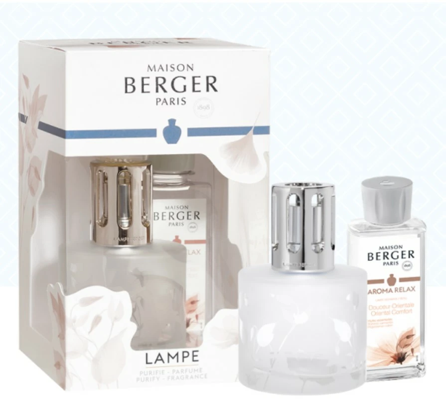Een wolk waar u van kunt dromen.. De Lampe Berger Giftset Aroma Relax begint zo zoet als u wilt: een ronde flacon, het mat witte glas, een transparant bloemendecor en de elegante rechte sierdop maken het geheel prachtig af en stralen een en al natuurlijkheid uit. Een vrouwelijk en subtiel gepoederde olfactorische samenstelling.. Het 180ml huisparfum Douceur Orientale zorgt dankzij haar complexe combinatie van etherische oliën: patchoeli voor ontstressing, Guaiac-hout als stimulerende geeststimulans en een in evenwicht brengende geranium, voor het ultieme moment van ontspanning! Met zijn weldadige invloed op emoties, ontwikkeld volgens gepatenteerde en gecertificeerde richtlijnen, is de Lampe Berger Giftset Aroma Relax het ideale cadeau voor vrienden, familie of gewoon voor u zelf om kennis te maken met Lampe Berger en haar bijzondere welzijnsritueel.