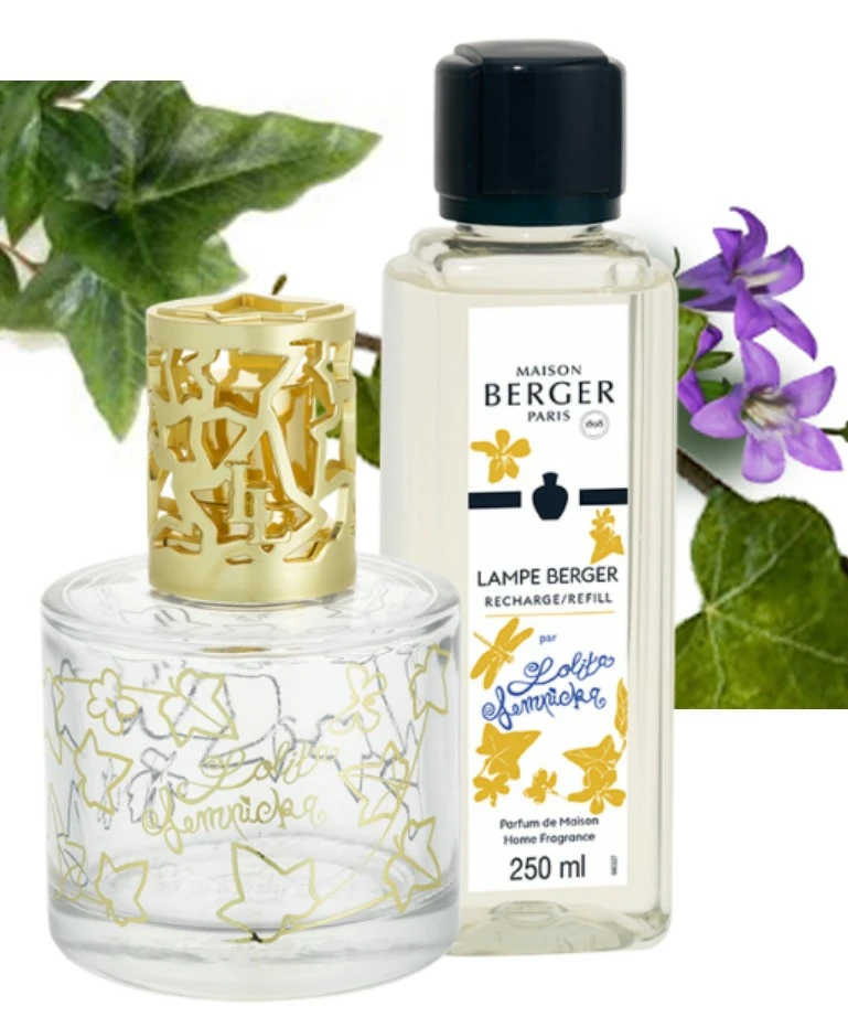 Laat u verleiden door de betoverende wereld van deze giftset Lampe Berger Pure Lolita Lempicka Transparente, met zijn zuivere lijnen en sprookjesachtige goudkleurige versiering. De blaadjes slingeren sierlijk rond het transparante glas, net als op de bewerkte sierdop. Het iconische huisparfum Lolita Lempicka zorgt voor één en al betovering met de vrouwelijke en sensuele parfumnoten van zoethoutbloesem, viooltjes en tonkaboon!