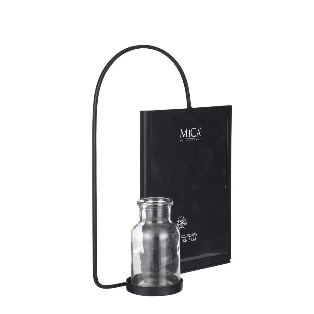 Met Mica Decorations Fyn Fotolijst Met Vaas worden jouw dierbaarste herinneringen extra mooi gepresenteerd. In het zwart metalen design is namelijk ook glazen vaasje verwerkt. Hierdoor kun je bij elke foto ook wat mooie bloemetjes neerzetten. Dit maakt het beeld extra bijzonder!