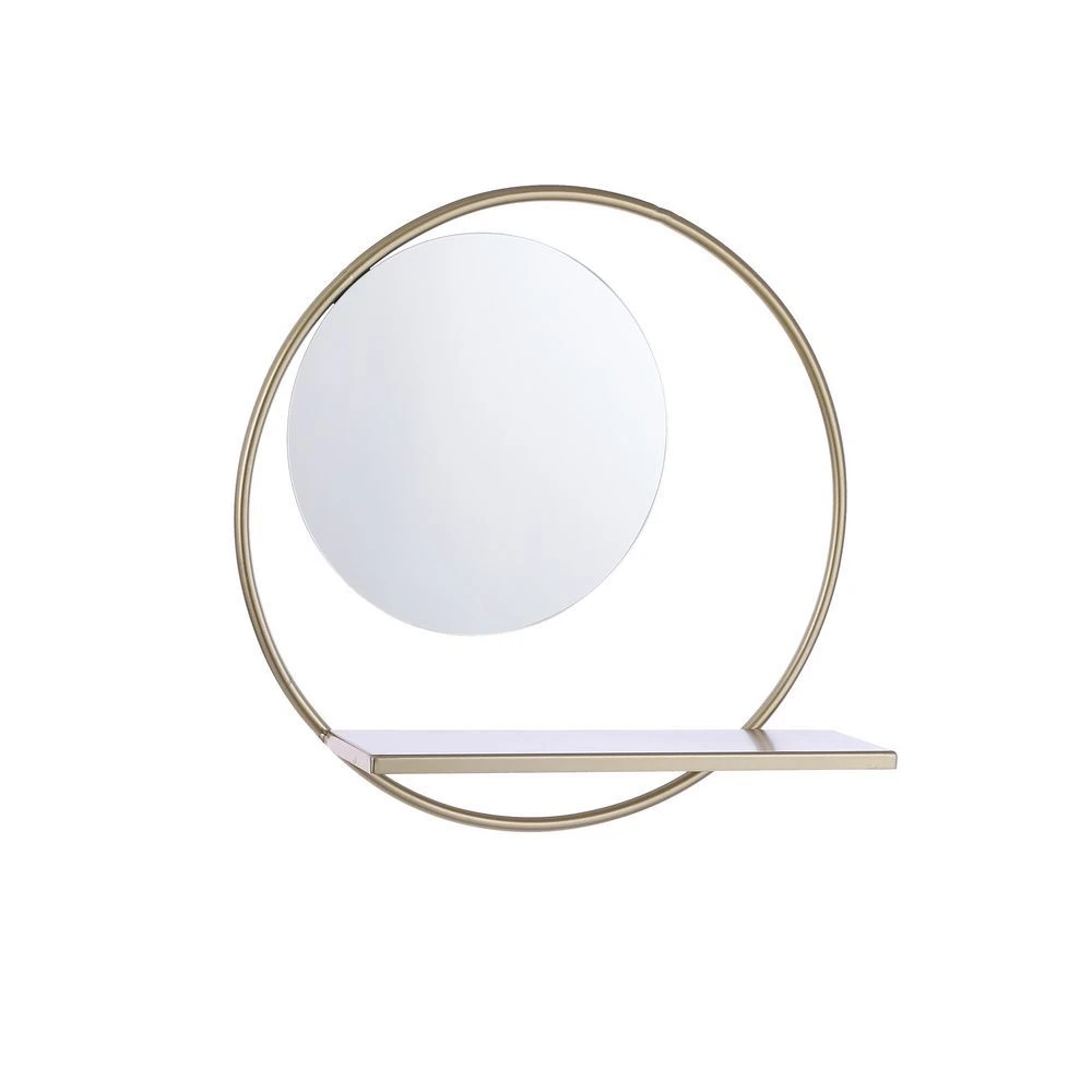 Het moderne design van de Mica Decorations Spiegel Phoenix is een aanwinst voor iedere lege muur. Het is bijna een kunstwerk! Daarnaast is hij door het handige plankje om wat spullen op te leggen ook nog eens erg praktisch. Ideaal voor in de hal of de slaapkamer. Het frame is gemaakt van metaal en heeft een gouden kleur. Waar hang jij hem op?