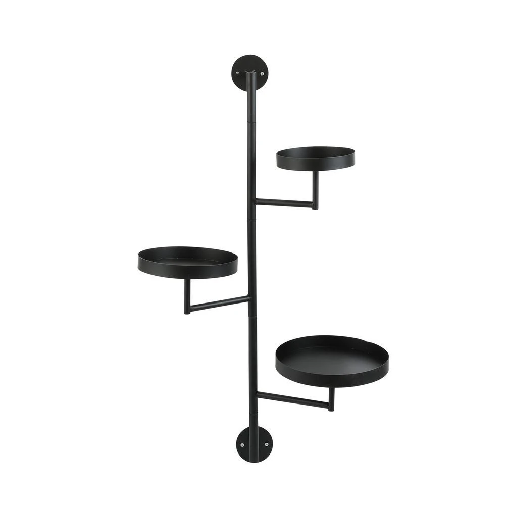 Met deze Mica Decorations Wandrek Perry presenteer je jouw favoriete decoraties op een unieke manier. Geen rechte planken, maar ronde plateaus die direct de aandacht trekken. Leuk voor wat planten, of maak er een sfeervol hoekje van met verschillende theelichthouders. Door het zwarte metaal krijgt het rek een stoere touch dat past in elk interieur. Wat zet jij erop? De afmetingen zijn L30 x B23 x H80 cm.