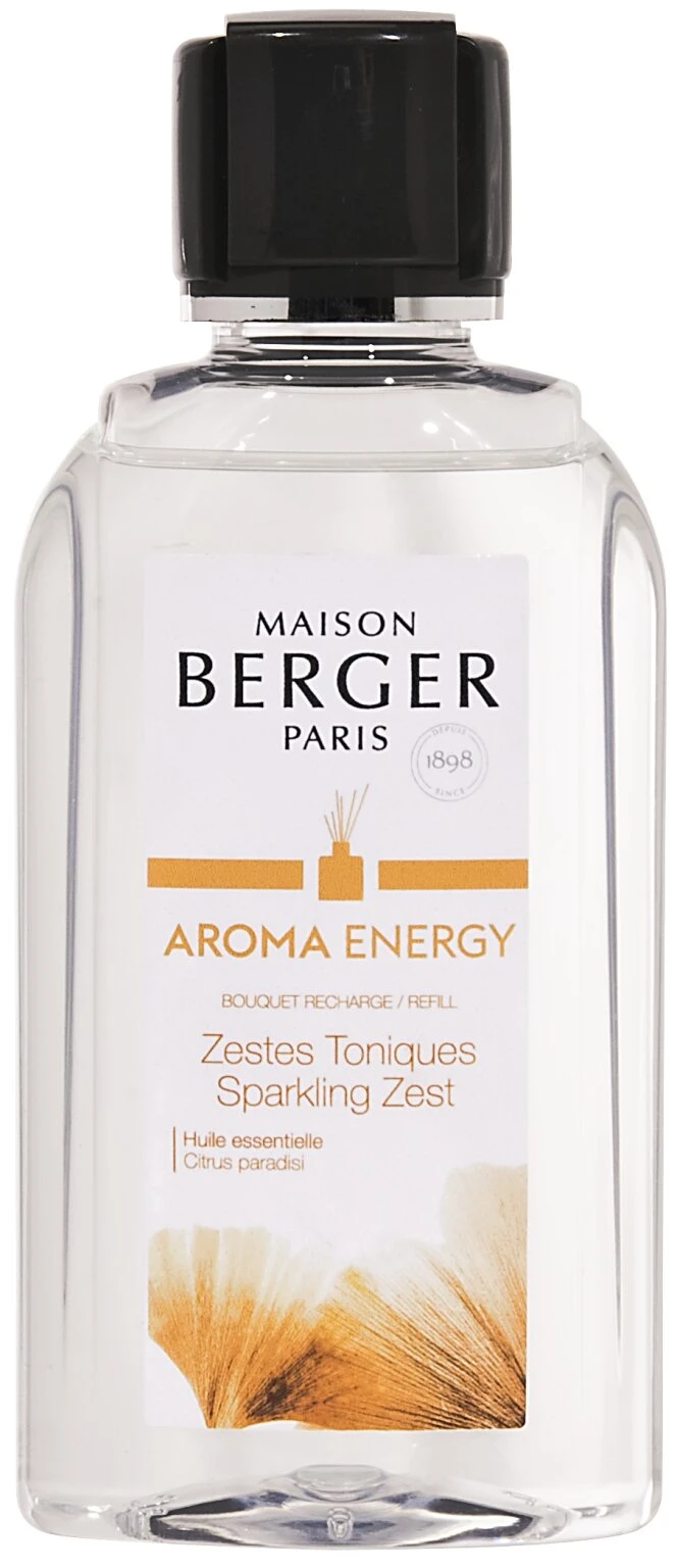U heeft hete zandvlaktes doorkruist, langzaam het Atlasgebergte beklommen en het oker van Marrakech verlaten.. Een oasis ligt voor u.. Welkom in het land van de Berbers met de Navulling 200ml Parfumverspreider Aroma Energy van Maison Berger Paris.. Aroma Energy is een ode aan de hervonden frisheid.. De energie van zijn citrusachtige noten vermengt zich met de kruidige noten van muskus en wordt op elegante wijze door uw parfumverspreider verspreid in uw interieur.. Met Aroma Energy heeft u een modern en vrolijk huisparfum in huis dat essentiële oliën met weldadige eigenschappen bevat. De dynamiek wordt versterkt door de aanwezigheid van essentiële grapfruitolie dat helpt positiever te denken, opgewekter te zijn en dat angstgevoelens en beklemming vermindert..
