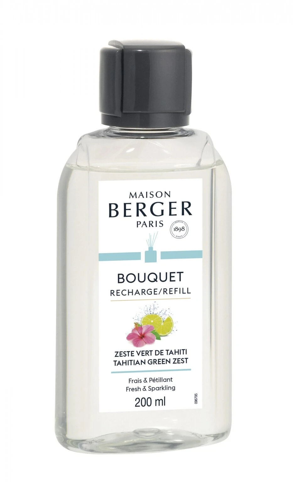 Cre?er die bij u past met de Navulling Parfumverspreider Zeste vert de Tahiti van Maison Berger Paris. De Navulling Parfumverspreider Zeste vert de Tahiti begint met een citrusachtig geurspoor van limoen en grapefruit en de fruitige, sappige noot van appel. Daarna volgen de subtiele geur van lotusbloem en citroenblad. De geurcompositie eindigt met een houtachtige, exotische basisnoot waarin patchouli en kokosnoot elkaar ontmoeten. Een sprankelende geur uit Polynesi?.