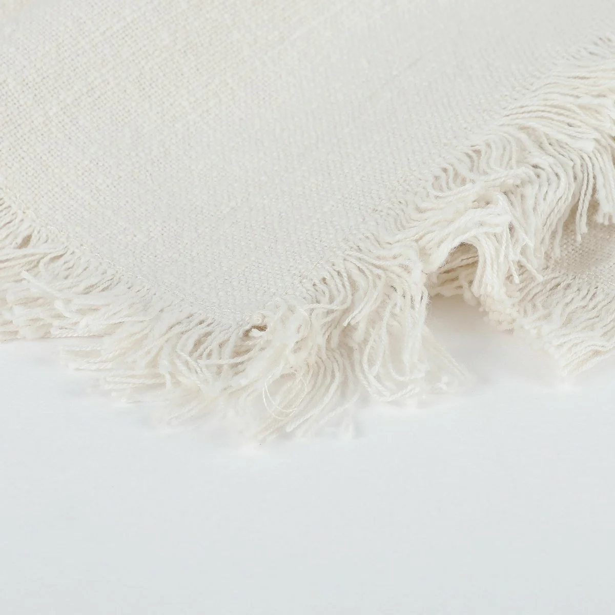 Maak jouw tafeldekking compleet met deze mooie servetten uit de Xavie serie van Mica Decorations. Handig tijdens het eten en tegelijkertijd erg decoratief. De servetten in de kleur offwhite met speelse franjes fleuren jouw eettafel in een mum van tijd op. De set bestaat uit vier servetten en hebben elk een afmeting van L40 x B40 cm.