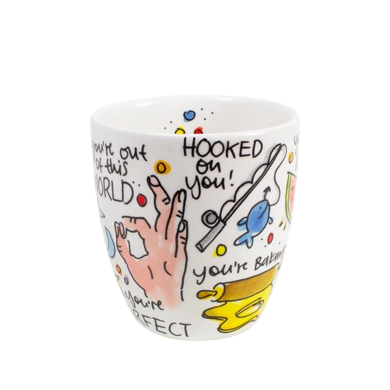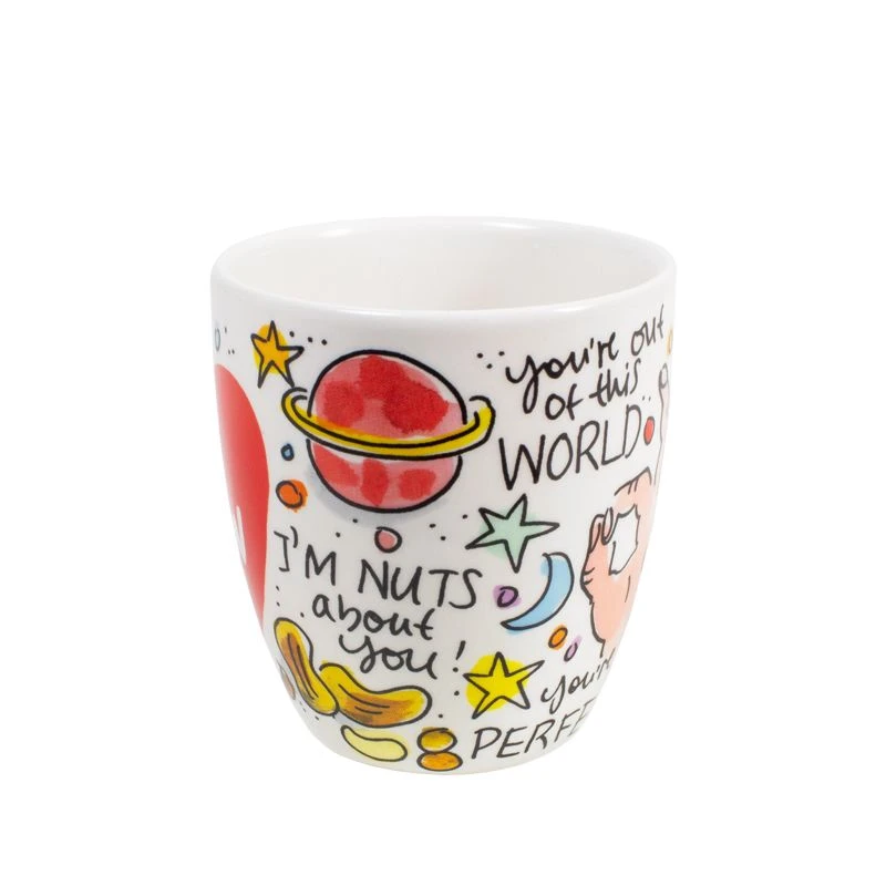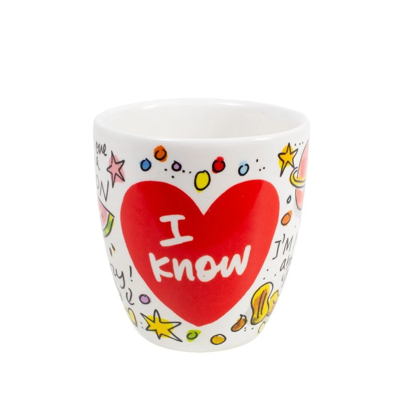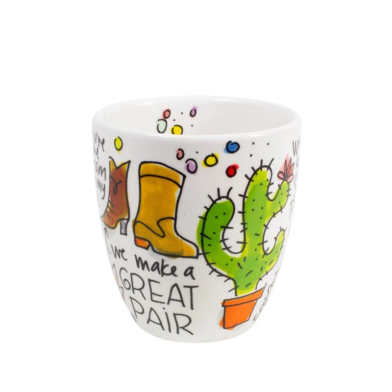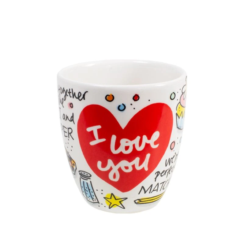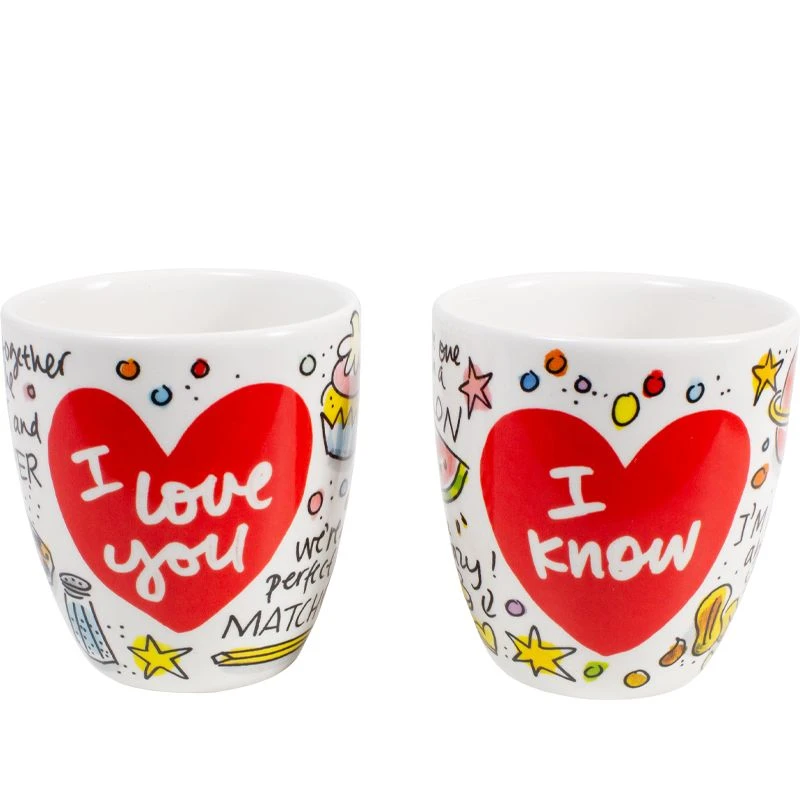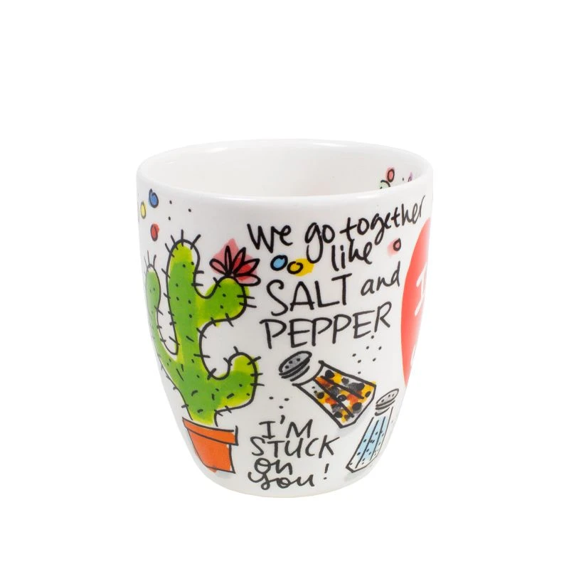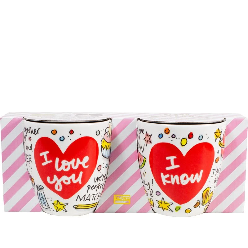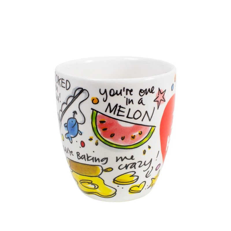 Vier Valentijnsdag met deze set van 2 minimokken met allerlei leuke teksten, zoals “You’re one in a melon”, “We go together like salt and pepper” en “We make a great pair” van de nieuwe Valentijn collectie van Blond Amsterdam. Door de vrolijke teksten op de beker kom je helemaal in de Valentijnsferen. De minimokken hebben een koffieformaat en liggen lekker in de hand omdat ze geen oor hebben. De set is leuk te combineren met de andere Valentijn items, zoals de beker, het hartenbord of de hartenkom. Happy Valentine!