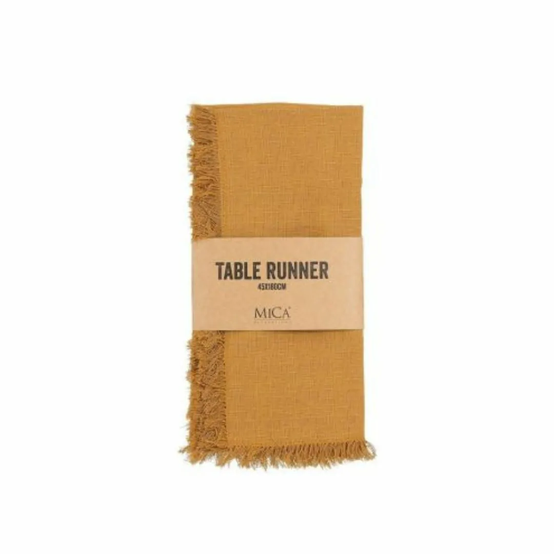 De tafelloper Villia is een elegante en moderne accessoire die elke tafel zal verfraaien. Met een lengte van 180 cm en 45 cm breedte past de tafelloper perfect op de meeste eettafels en biedt het voldoende bescherming tegen krassen en vlekken. De warme en levendige okerkleur geeft een eigentijdse uitstraling aan het interieur en kan gecombineerd worden met verschillende kleuren en materialen. De tafelloper is gemaakt van katoen en kan gewassen worden op 30 graden.