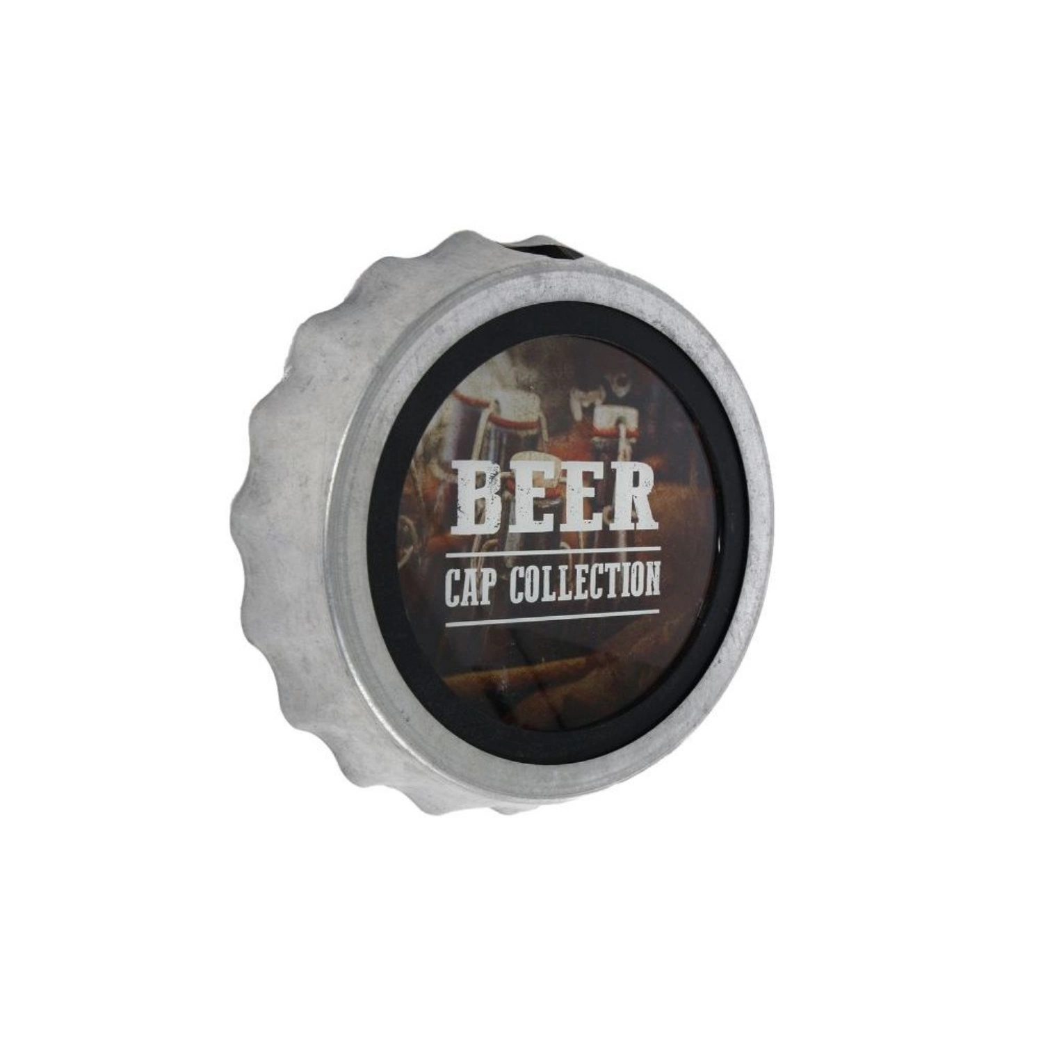 Upgrade je woning of tuin met deze metalen wanddecoratie! De grote kroonkurk van echt metaal heeft de tekst ‘Beer Cap Collection’ met een sfeervolle afbeelding. Perfect voor de achtertuin of Mancave! Met afmetingen van 24x24x5 cm is deze wandversiering een opvallende eyecatcher! Bovenin zit een gat om je bier dopjes te verzamelen.