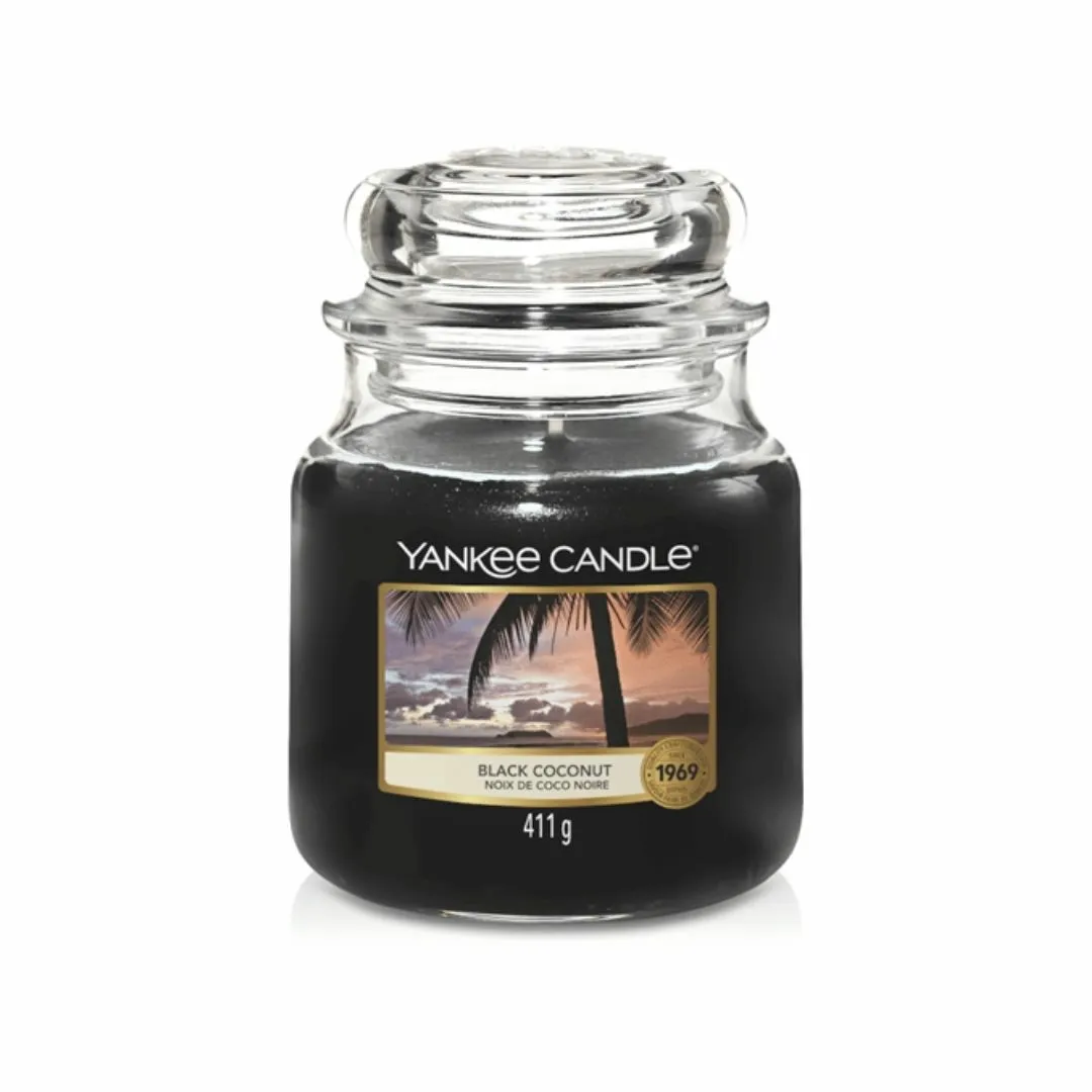 Geniet van de Yankee Candle Black Coconut met een geur van een zonsondergang in het paradijs. Rijke kokos, cederhout en eilandbloesems beloven een avond van verdiende rust. De geurkaarsen zijn verpakt in een mooi (herbruikbaar) glas met deksel. Met deze Yankee Candle Medium Jar geniet je ongeveer 70 branduren van een heerlijk ruikende woonkamer.