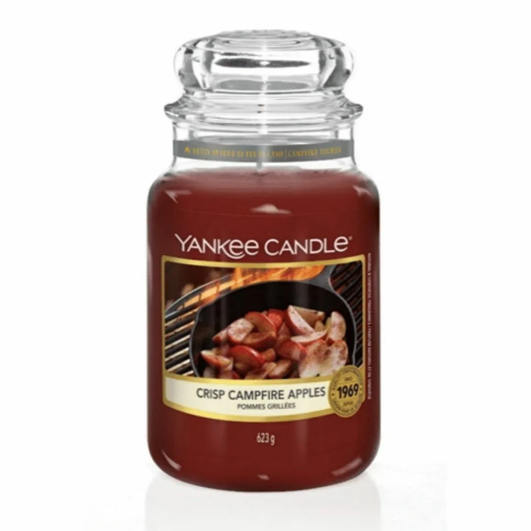 Geniet van de geur van de Yankee Candle Crisp Campfire Apples. De geur van verse geplukte appels die zijn bereid op een smeulend kampvuurtje bij middernacht. De geurkaarsen zijn verpakt in een mooi (herbruikbaar) glas met deksel. Met deze Yankee Candle Large Jar geniet je ongeveer 130 branduren van een heerlijk ruikende woonkamer.