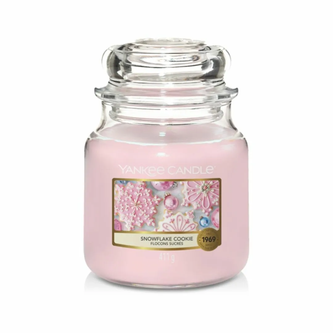 Geniet van de Yankee Candle Snowflake Cookie met een geur van een heerlijke ruikende kerstkoekjes gemaakt van roomboter, vanille en suiker. De geurkaarsen zijn verpakt in een mooi (herbruikbaar) glas met deksel. Met deze Yankee Candle Medium Jar geniet je ongeveer 70 branduren van een heerlijk ruikende woonkamer.